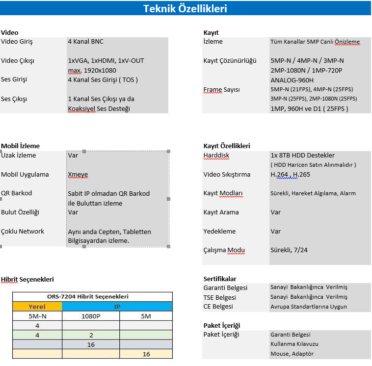 ORFE 5MP AHD Xmeye Kayıt Cihazları Hybrid olarak adlandırılan AHD, Analog, HD-TVI, HD-CVI ve IP